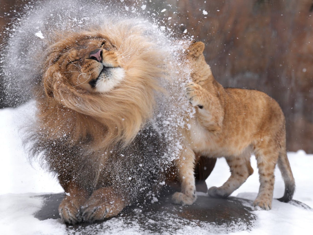 На лице этого многодетного льва изображен весь спектр эмоций счастливого отца