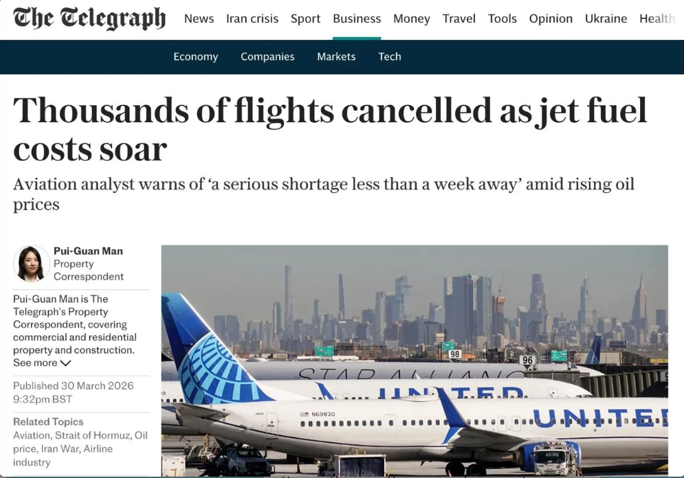 Причина — резкий скачок цен на топливо после обострения ситуации на Ближнем Востоке. Стоимость авиационного керосина выросла с $742 до более чем $1710 за тонну. Одновременно нефть Brent поднималась до $116 за баррель.