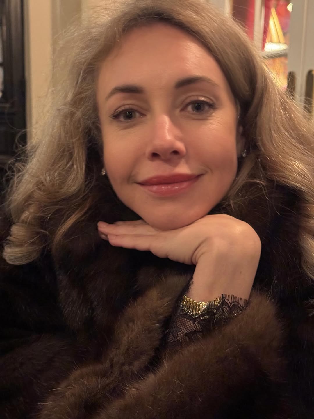 Соболью шубу приволокла и цеплялась в ней к випам)