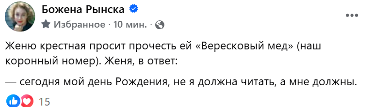 Хотели по случаю дня Рождения прочесть вам Вересковый мед наизусть, но артистка забоялась камеры. Евгения Игоревна, люблю тебя. Будь!