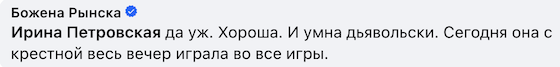 Тем не менее, когда я публично поздравила Игоря с юбилеем НТВ, назвала его талантливым создателем, чье детище уничтожено, ко мне тут же прилетело в личку пространное сообщение от Коха, какое я говно, раз я об Игоре такое хорошее пишу.