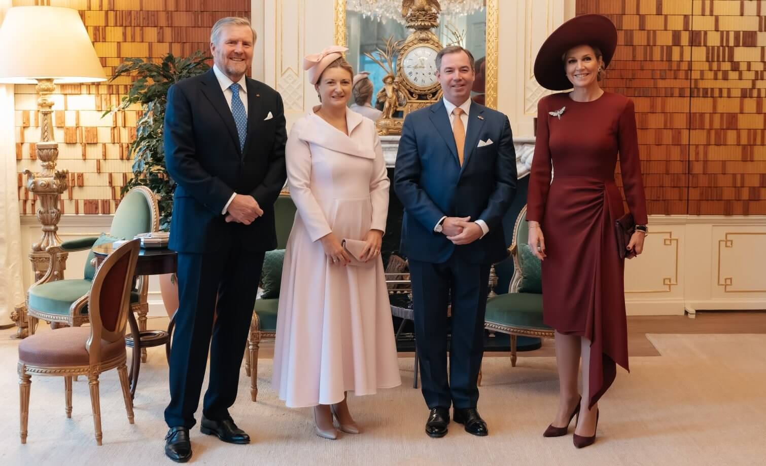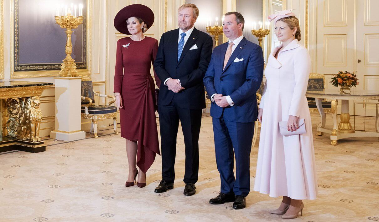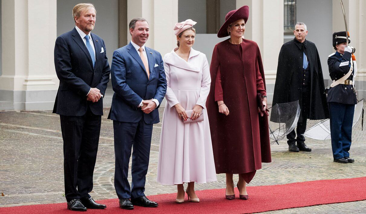 Король Нидерландов Виллем Александр и королева Максима приветствуют Великого герцога Люксембурга Гийома и Великую герцогиню Люксембурга Стефани с официальным визитом