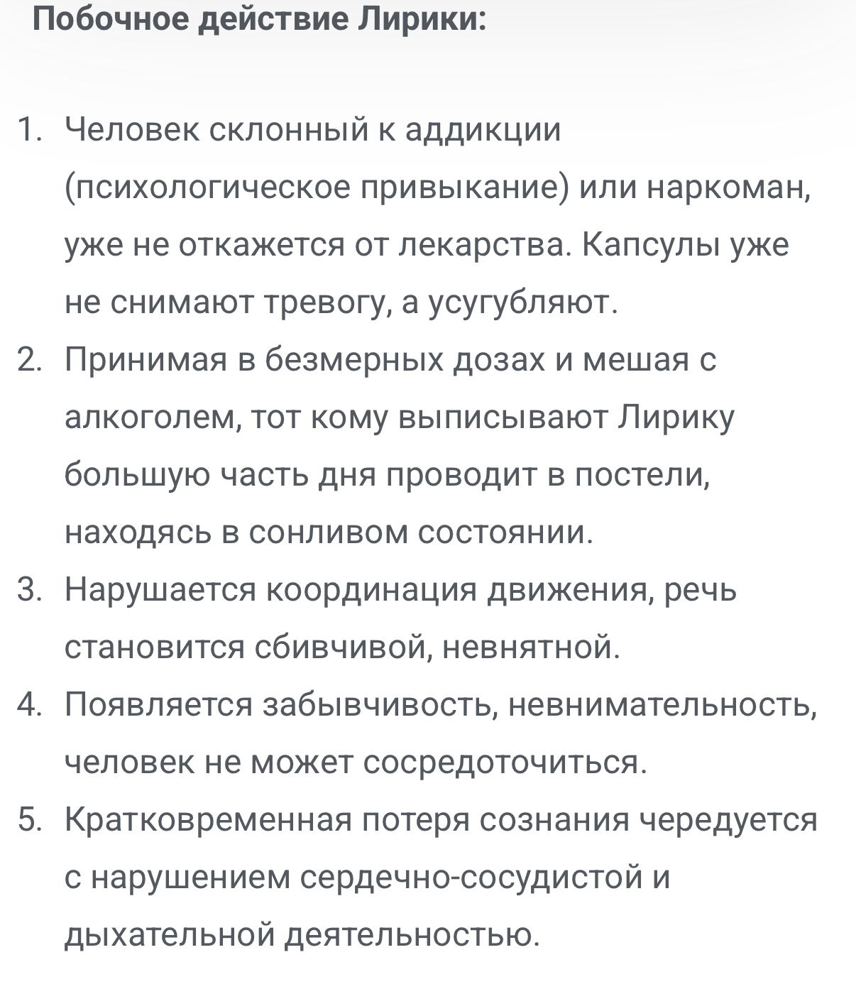 ой, миленькое, не) я не принимаю ее, боже упаси) имело ввиду, что я принимаю 3 препарата в целом, это все АД. а про лирику сужу по бабке моего алкаша при эпилепсии. и у нее не замечено жора. но я не сильно вдавалось в подробность как и сколько она принимает. про лирику в целом знаю, что ее при судорогах и онко выписывают и что на ней торчат.