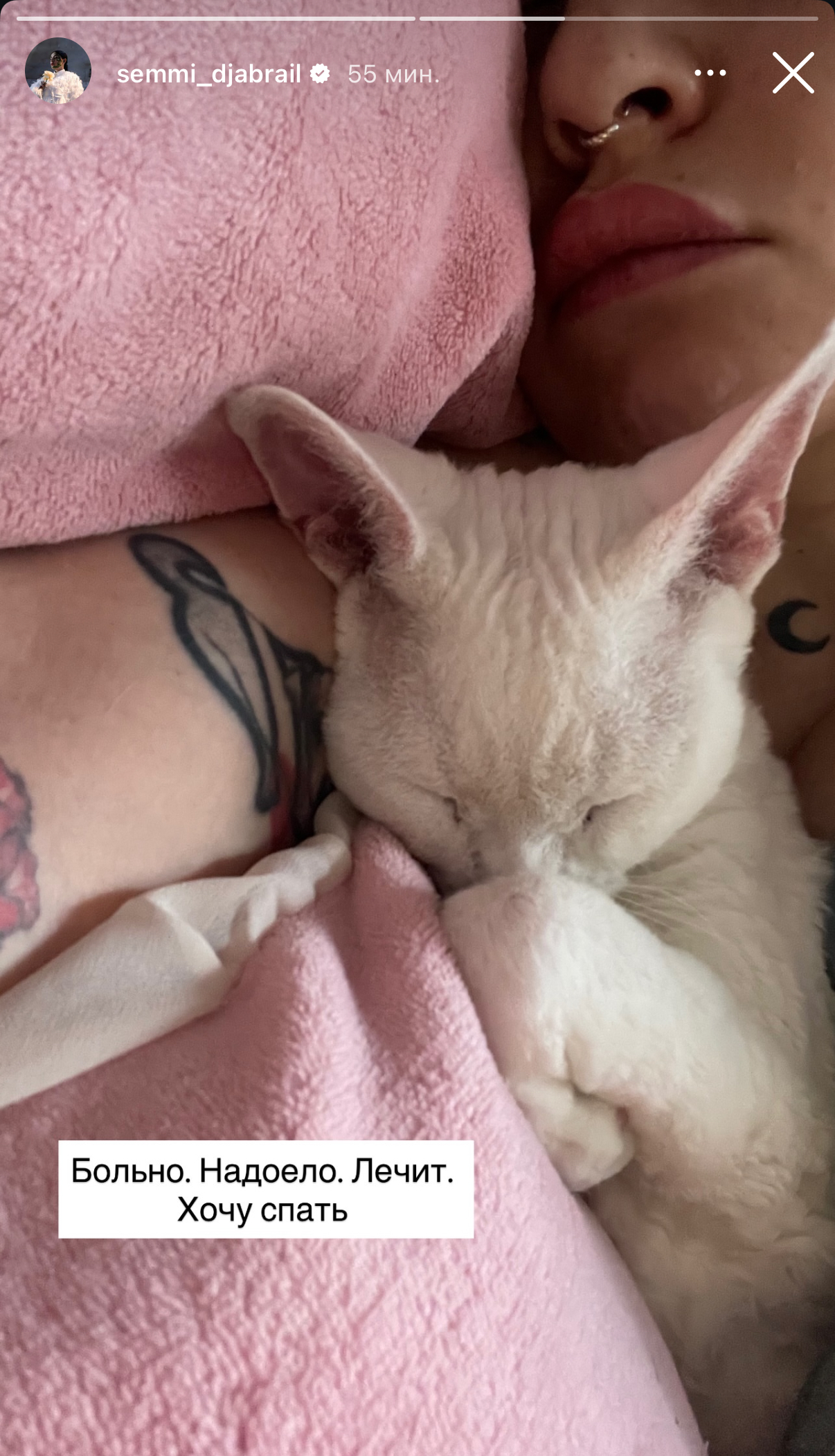 Там новый видос - опухшая, лохматая после празднования др. Для жалобности напялила пижаму и прижимает кружечку к груди. Хворая, болезная бедося, совсем не та расфуфыренная пзда, что буквально на соседнем видео.