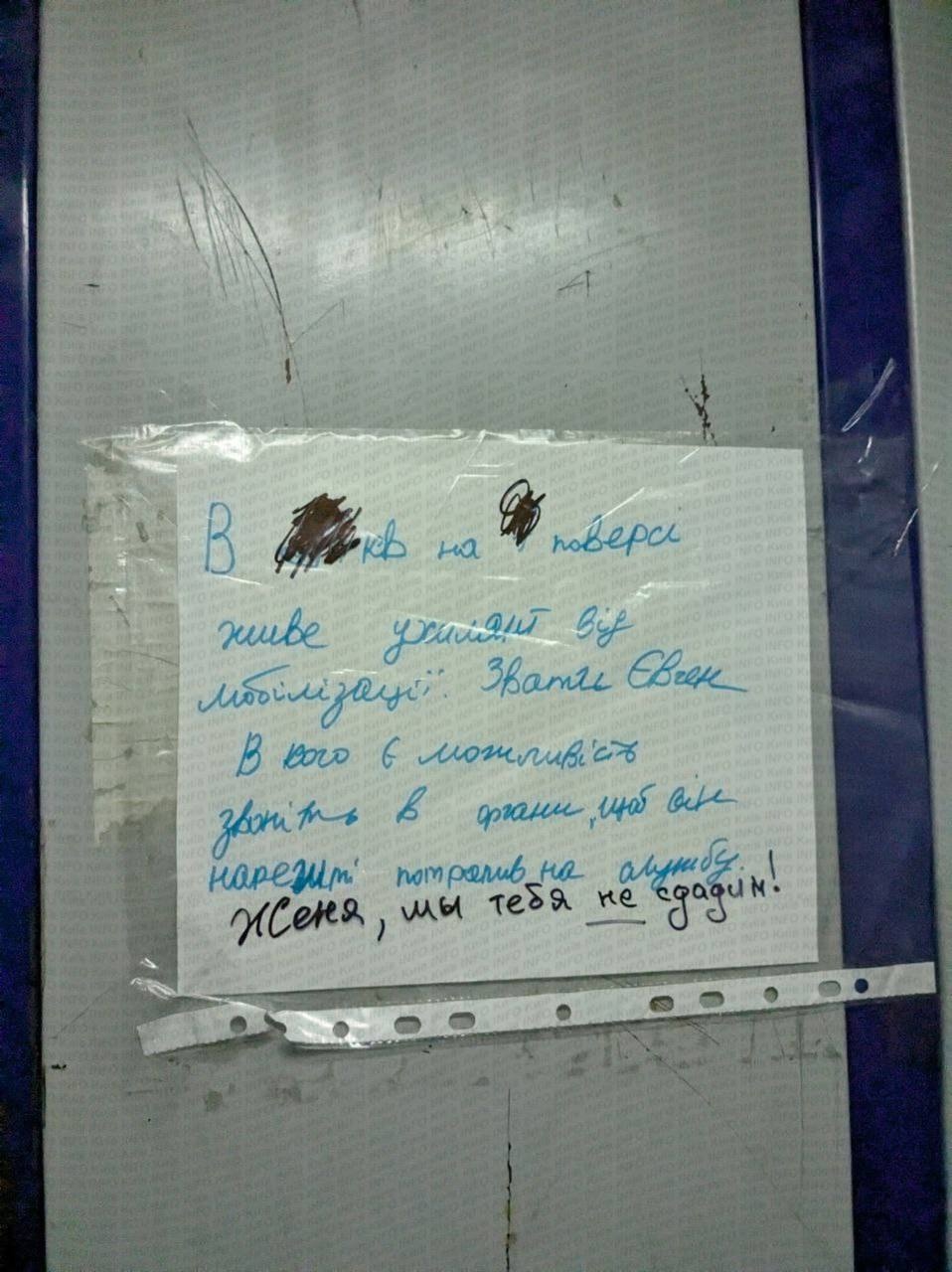 «Это Татьяна, она такая счастливая, потому что получила продуктовый набор. Чтобы получить такой же — поделись информацией об уклонистах с ТЦК», — гласит надпись с листовки на одном из домов в Сумах.