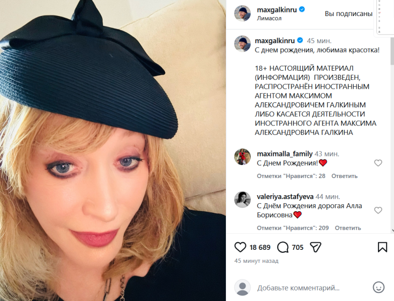 Ещё одна патриотка Лолита поздравила с днём рождения Аллу Пугачеву