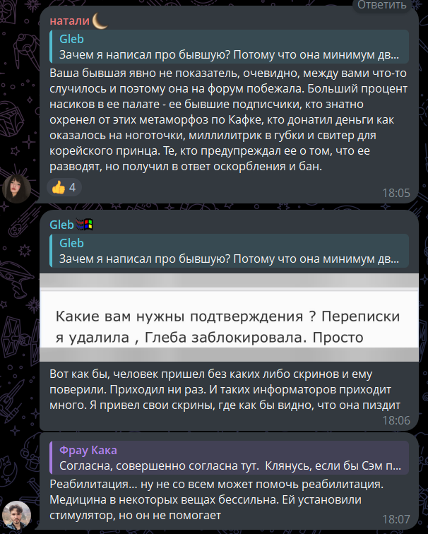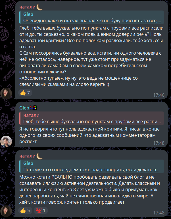 на текущий момент это все. предупреждаю, от Глебки пруфов ноль, просто надо хавать все, что делает Серька по факту ее инвалидности)