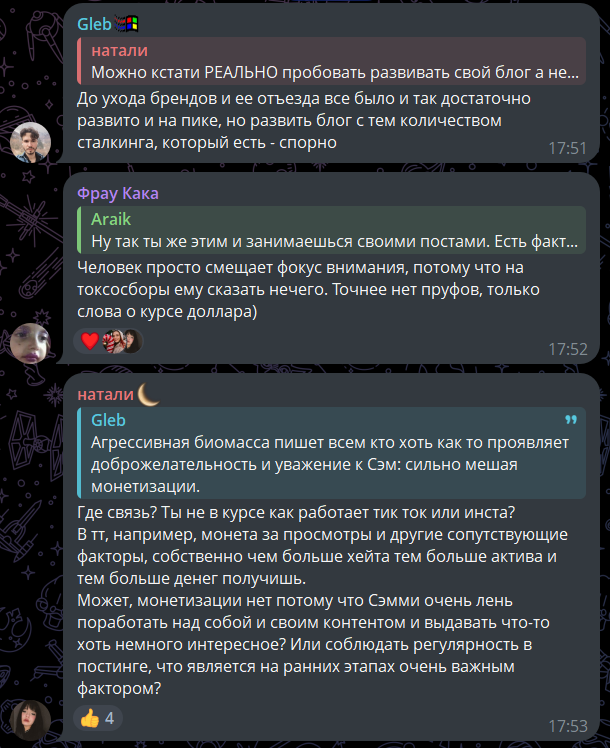 жалко глеба, вроде добрый чел, но такой тупой, прям идеальная жертва для таких паразиток, как серминаз. повезло ему, что уехал, иначе она б его досуха высосала. интересно будет глянуть видос, и вдвойне интересно будут ли там какие-то комментарии от жанны