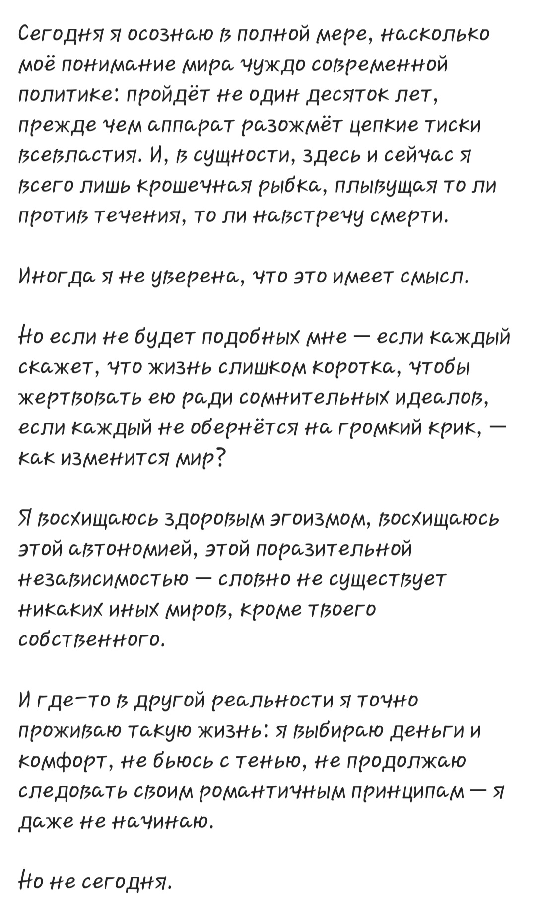 А так, честно говоря, меня уже просто почти физически воротит от нее и ее высеров. От этой самовлюбленной, лживой, несуразной графомании