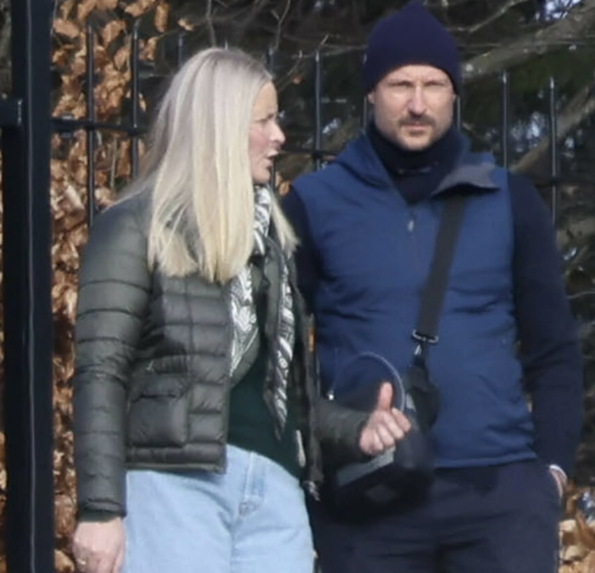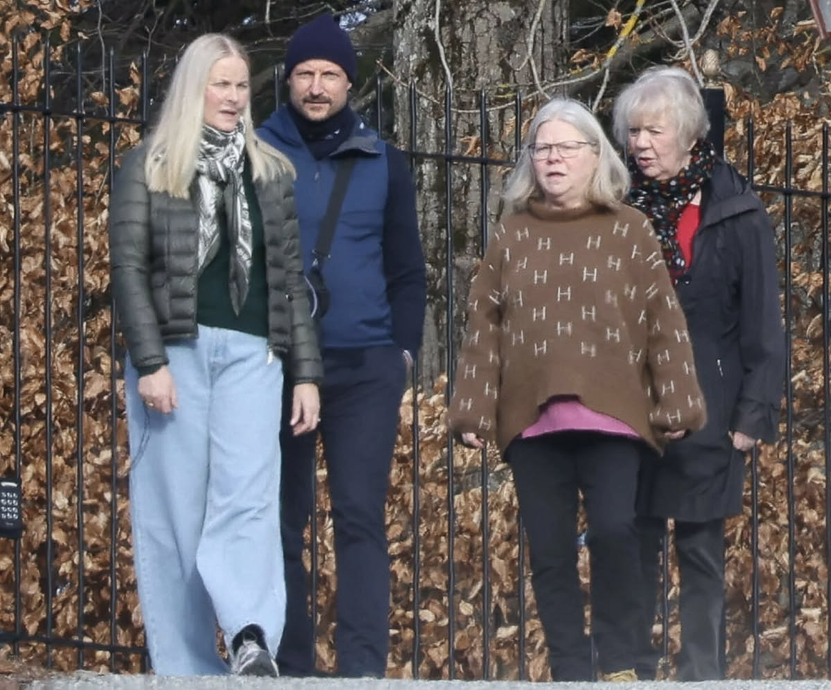 С парой также гуляли их семейный психотерапевт, Лиза Странд Бьяркли, и няня Хокона, Берит Тверсланд. Няня в свитере от бренда Марты Луизы))