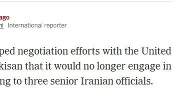 По данным трех высокопоставленных иранских официальных лиц, Иран прекратил переговоры с США, проинформировав Пакистан о том, что он больше не будет участвовать в обсуждении прекращения огня.