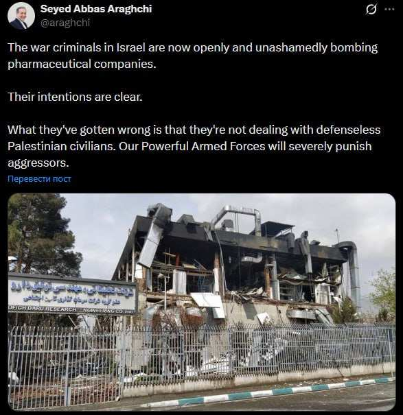 «Военные преступники в Израиле теперь открыто и без стеснения наносят удары по фармацевтическим компаниям», — пишет Аракчи.